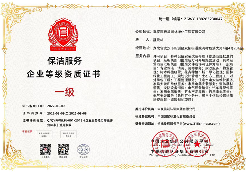 您的位置:首页荣誉资质保洁服务企业等级资质证书